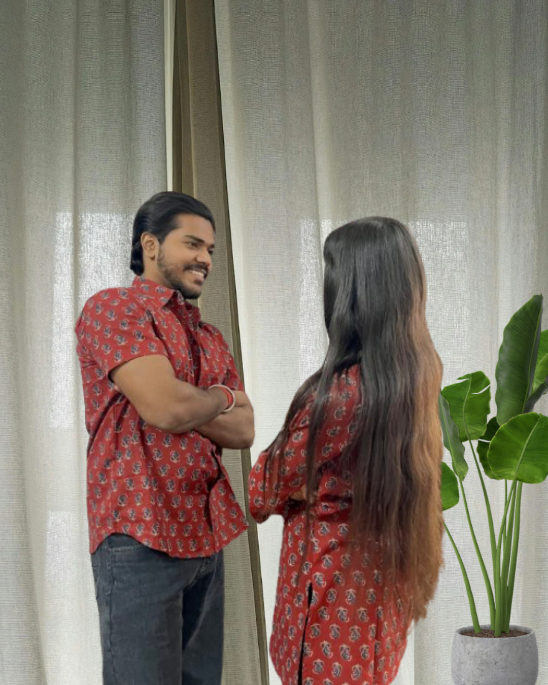 Match in style with our coordinated couple set featuring a Maroon printed shirt for him and a V-neck straight-cut kurti for her. Made from soft, breathable fabric, this set is perfect for casual outings, dates, and photoshoots. Stylish, comfortable, and perfectly paired for couples who love to twin effortlessly.